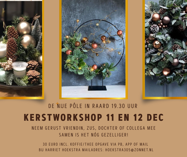 Ook dit jaar organiseert Harriët weer twee gezellige kerstworkshops in het Dorpshuis De Nije Pôle in Raard.