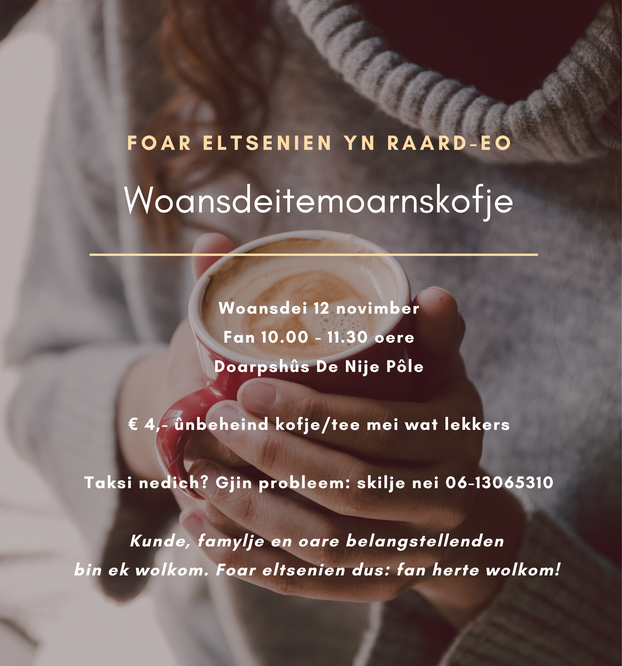 27. oktober 2025 Woansdeitemoarnskofje Wa komt kofje/thee drinken (mei wat lekkers) op 12 novimber? tagPlaceholderTags: