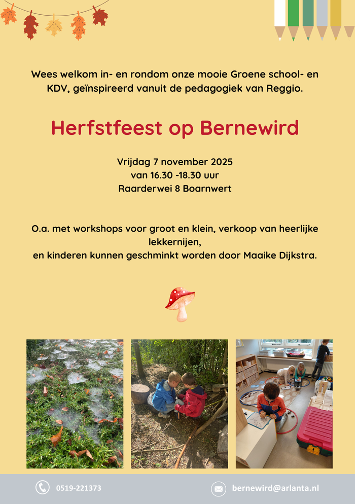 Vrijdagmiddag 7 november organiseert Bernewird een Herfstfeest. Ook alle inwoners van Foudgum, Boarnwert en Raard zijn van harte welkom!